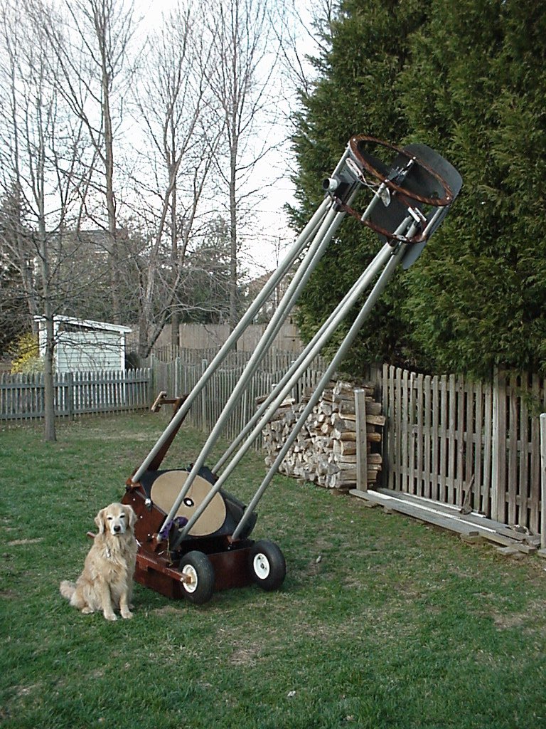 Throughout this time, longer trips with TJ in our Jeep were limited by lack of space to bring along our two Golden Retrievers, Lady and Tramp. TJ weighed in at about 350 lbs and took up most of the room in the Jeep. So in 1999, I started a long-awaited rebuilding of the scope into a modern Kriege/Obsession style telescope that would at least halve the weight and reduce the volume of space TJ took up it the Jeep.